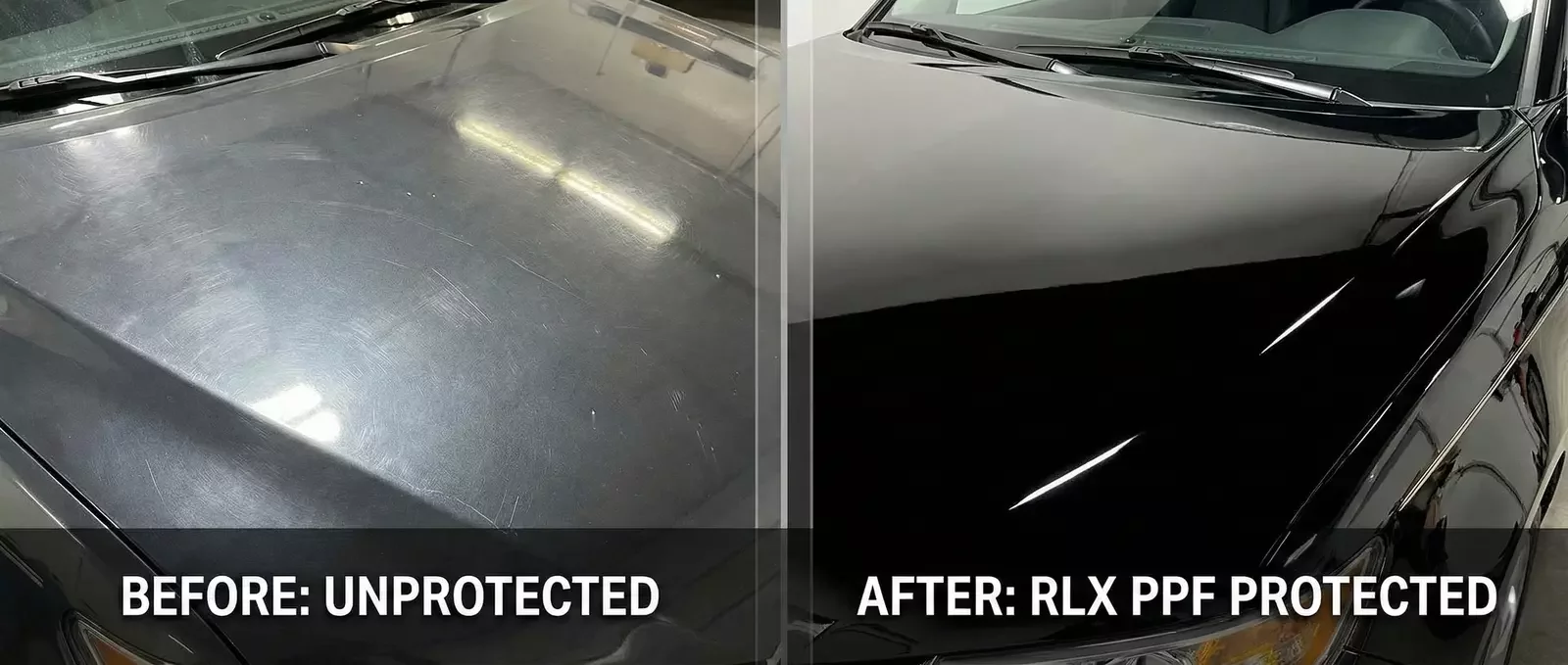 RLX PPF delivers crystal-clear, professional-grade paint protection for drivers who value a flawless finish and long-term resale appeal. Engineered for clarity, durability, and a refined factory-like look, RLX forms a nearly invisible barrier that helps defend your vehicle’s paint from everyday road wear, such as light scratches, stone chips, UV exposure, and common stains. Ideal for high-impact zones including bumpers, hoods, fenders, mirrors, and doors, RLX PPF is a smart upgrade for keeping your car looking cleaner, sharper, and better protected over time.